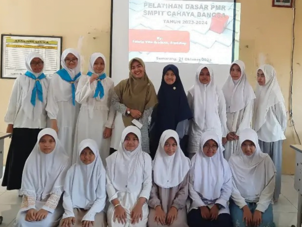 Sabtu, 21 Oktober 2023 ada Pelatihan PMR (Palang Merah Remaja) di SMP IT Cahaya Bangsa. Pelatihan ini diisi oleh ibu Febria Vita Arsiana, Amd. Kep. Ibu Febri merupakan ketua Komite SMP IT Yang juga kesehariaan bekerja di Puskesmas 2 Boja. Selengkapnya