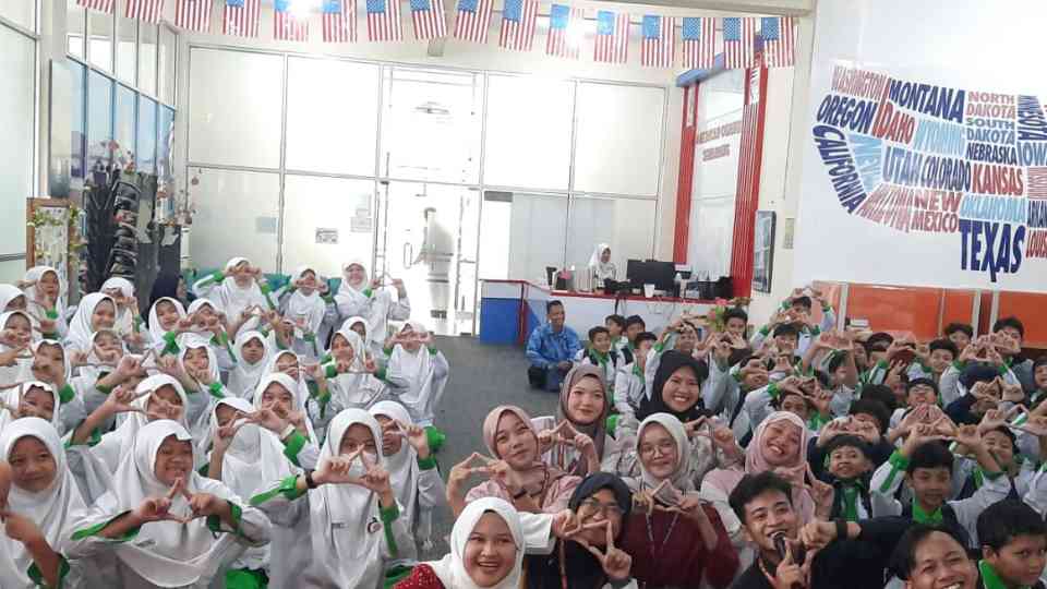 Perjalanan pertama kami adalah di American Corner Uin Walisongo Semarang. Disini kami belajar bahasa Inggris bersama kakak-kakak mahasiswa Uin Walisongo. Kakak-kakan Uin mengajak kami belajar bahasa Inggris dengan menyenangkan. Mereka juga memotivasi kami untuk bisa berbahasa Inggris dan senang berbahasa Inggris. Jika ada yang bercita-cita belajar diluar negeri akan banyak kemudahan. Ada juga lho kakak di UIN yang mengikuti program pertukaran pelajar ke luar Negeri. Setelah itu kami juga diberikan kesempatan untuk berliterasi dengan buku-buku bahasa Inggris dan membuka komputer American Corner yang ternyata banyak e-book dan juga ada video film berbahasa Inggris.