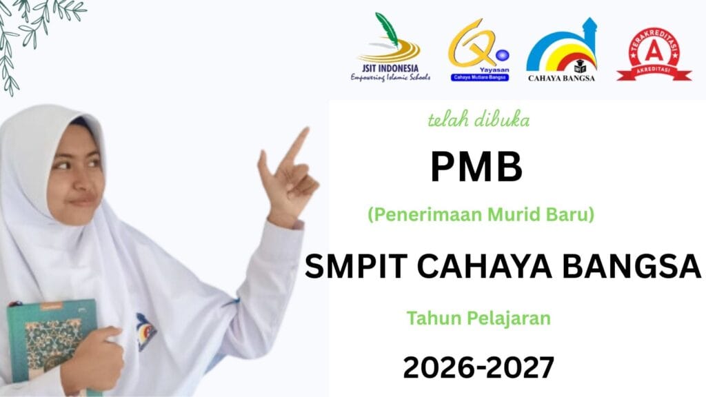 Selamat datang website SMP IT Cahaya Bangsa. Alhamdulillah SMP IT Cahaya Bangsa telah terakreditasi “A” membuka Pendaftaran Murid Baru (PMB) 2026/2027.